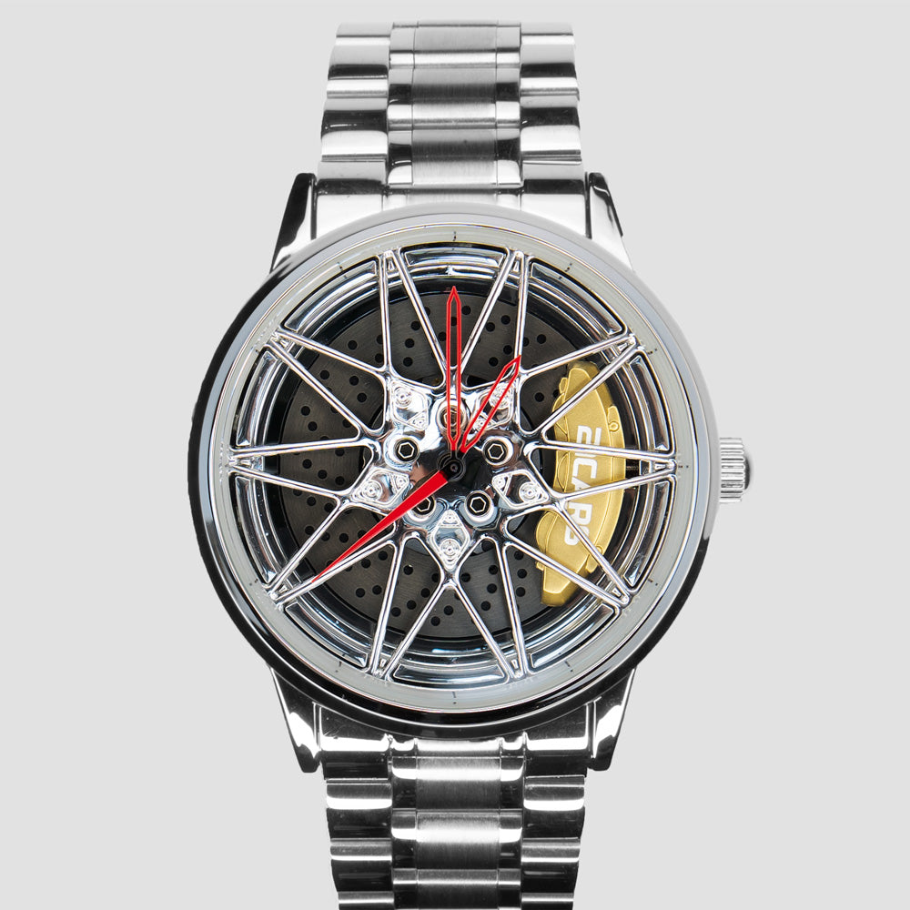 Our products are the result of passionate Swiss design and a deep-rooted love of automobiles. They are detailed replicas of real rims and also integrate a drift element that captures the essence of motorsport. Some models even have an innovative spin function that creates the impression of a moving car when you move your wrist.